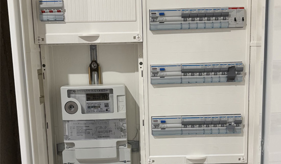 Übersichtlich aufgebauter Zählerschrank gemäß aktuellem TAB-Standard — fachgerecht geplant, normkonform installiert und zukunftssicher ausgeführt.
